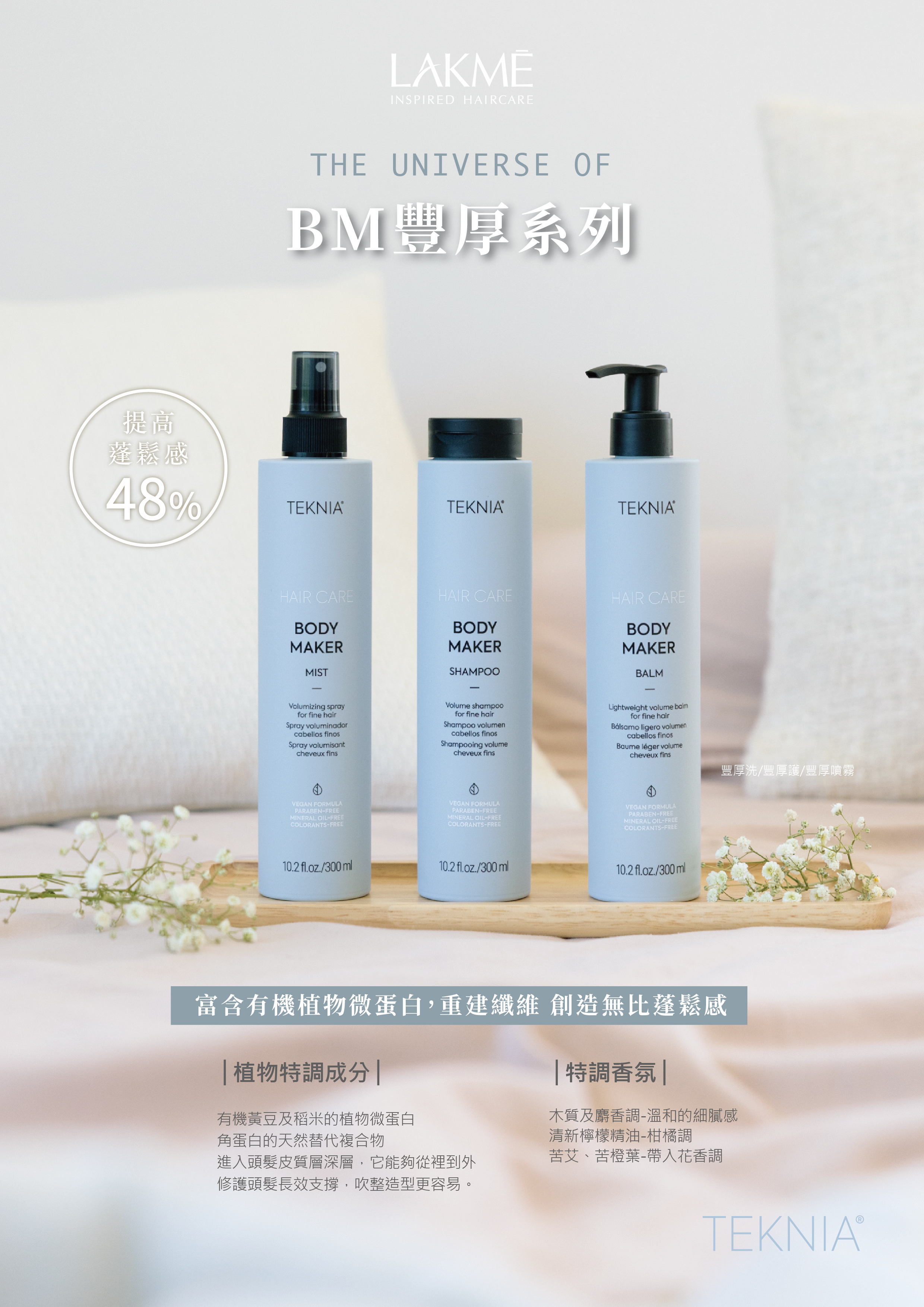 超級輕盈的配方強調立即及有彈性的蓬鬆感。自然的支撐及柔軟度。