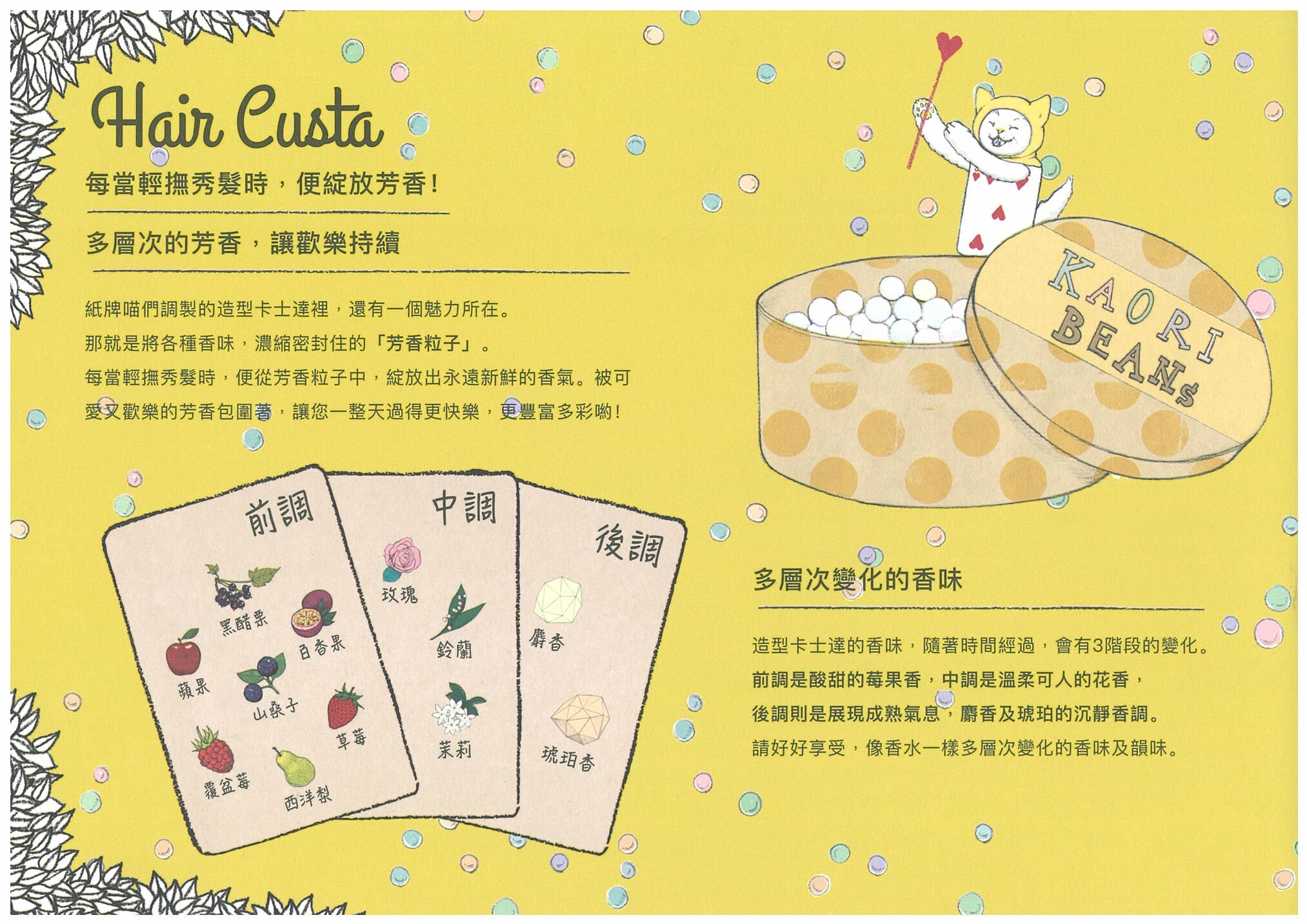 用途:頭髮造型/含卵殼膜、堅果油、山桑子精華的滋潤型造型品。不需刻意造型,即可帶來自然細膩的「柔順捲髮」造型