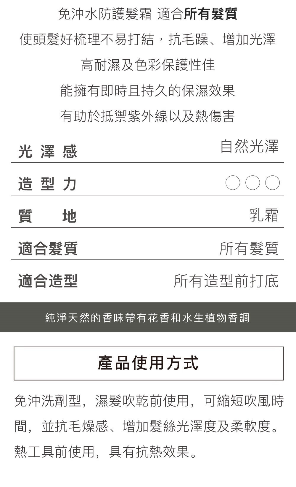 使頭髮好梳理不易打結﹐減少毛躁、增加光澤