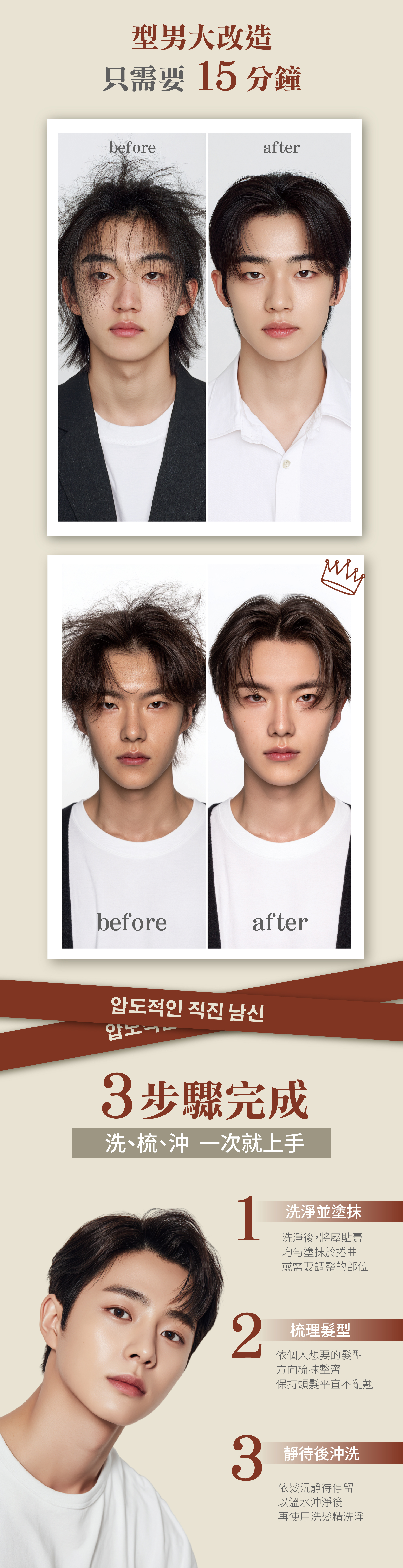 ✓頑固髮流需要柔順的男生