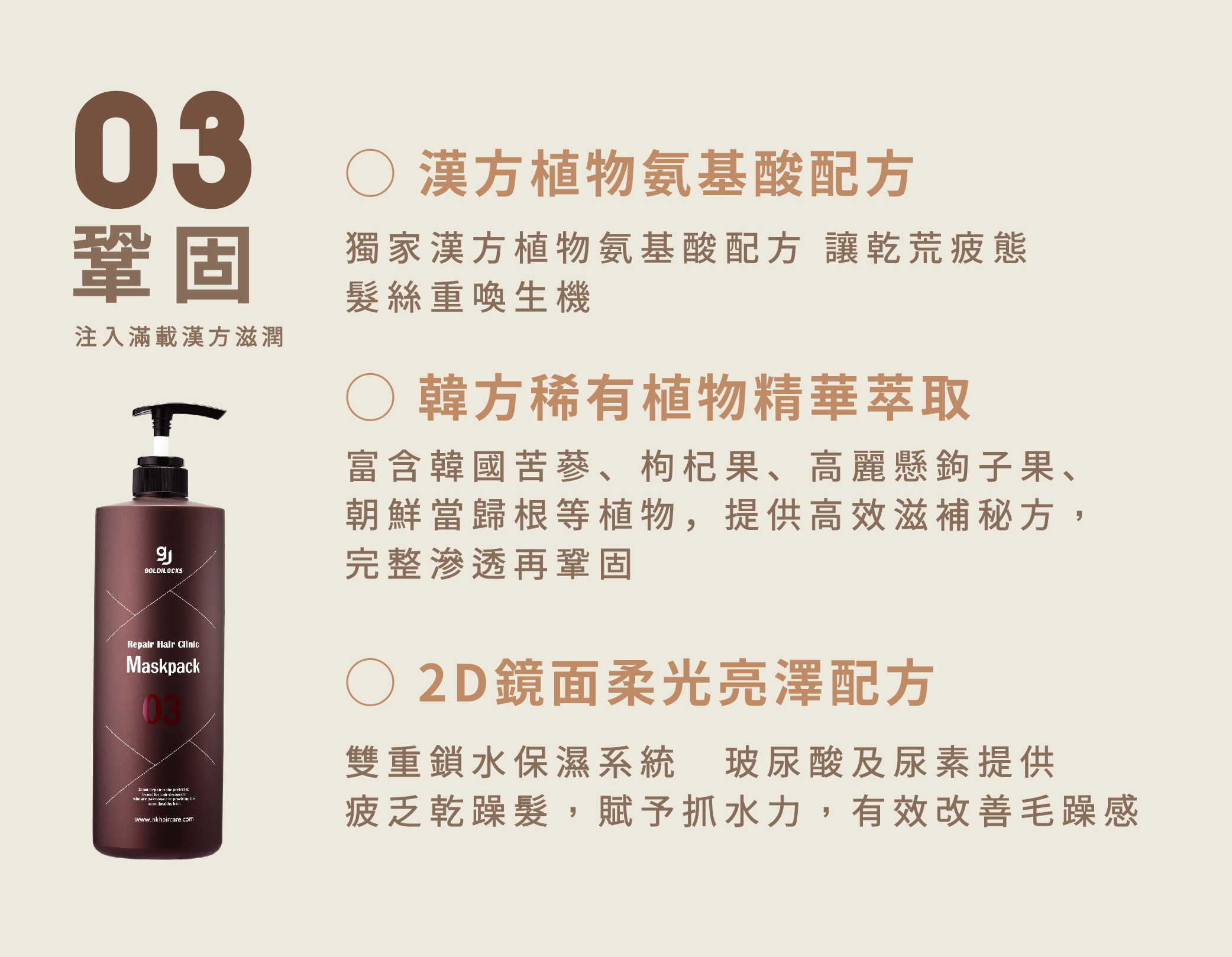 鞏固【注入漢方滋養精華】提高保護,減少外部頭髮損壞與斷裂